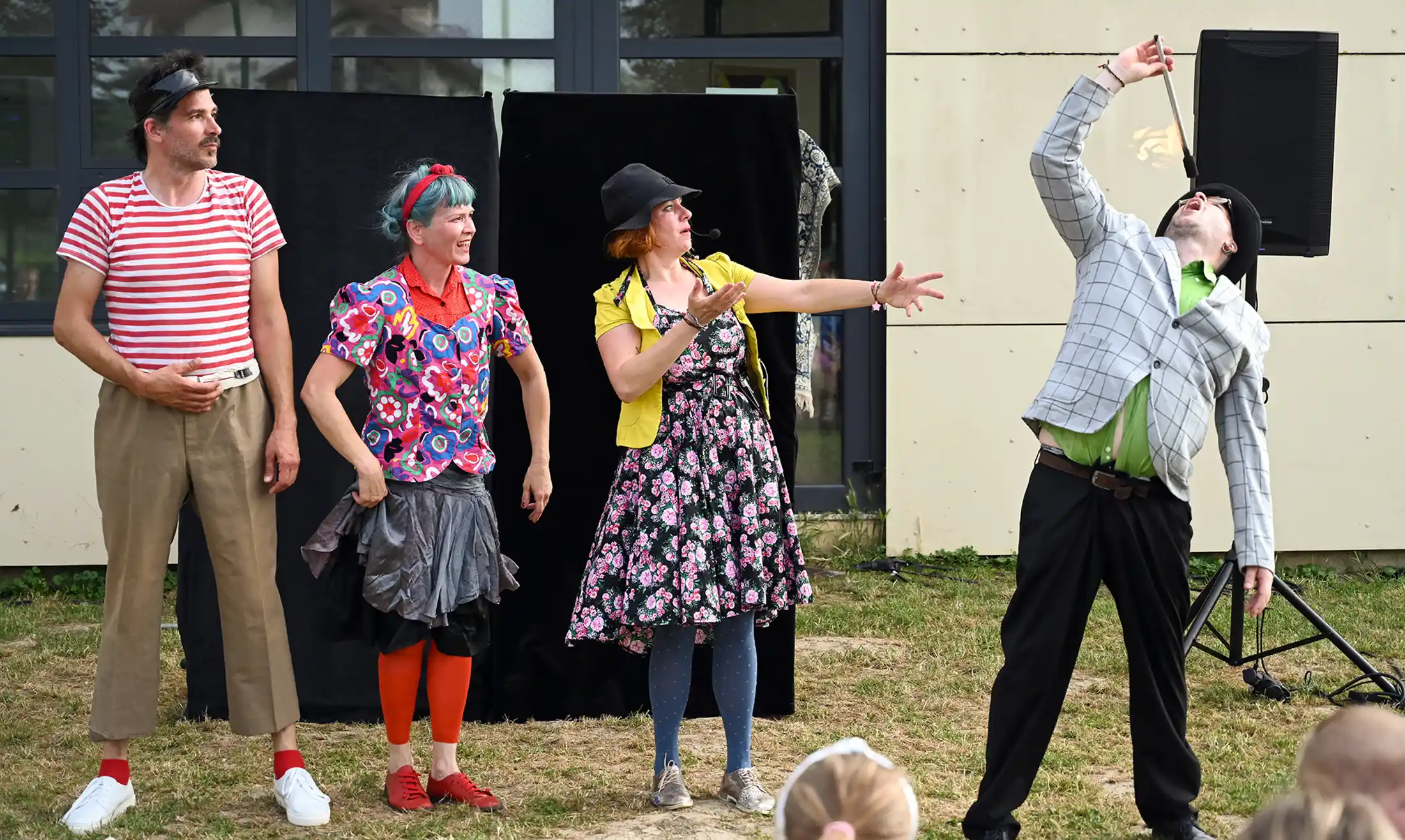 Priča je to o četiri različita lika koji zajedno trebaju izvesti predstavu na koju – kasne! Iako u početku naizgled ništa ne funkcionira, junaci i junakinje ove priče, kroz prijateljstvo i zajedničku želju da se predstava ipak izvede, pobjeđuju karakternu različitost i donose na scenu pregršt akcije i zabave za gledatelje.